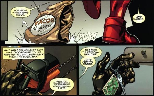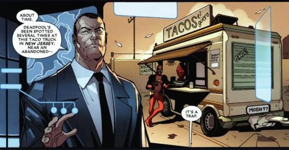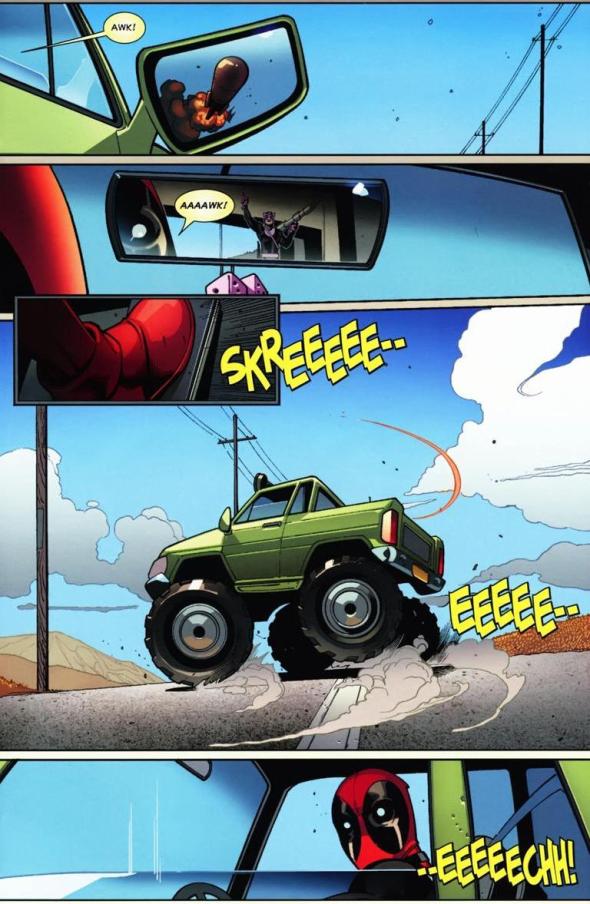 One guess to figure out who’s the assassin. Bullseye and Deadpool scrap for a few pages, because it’s why we read comics in the first place.