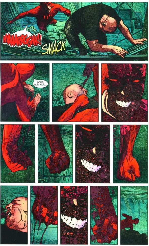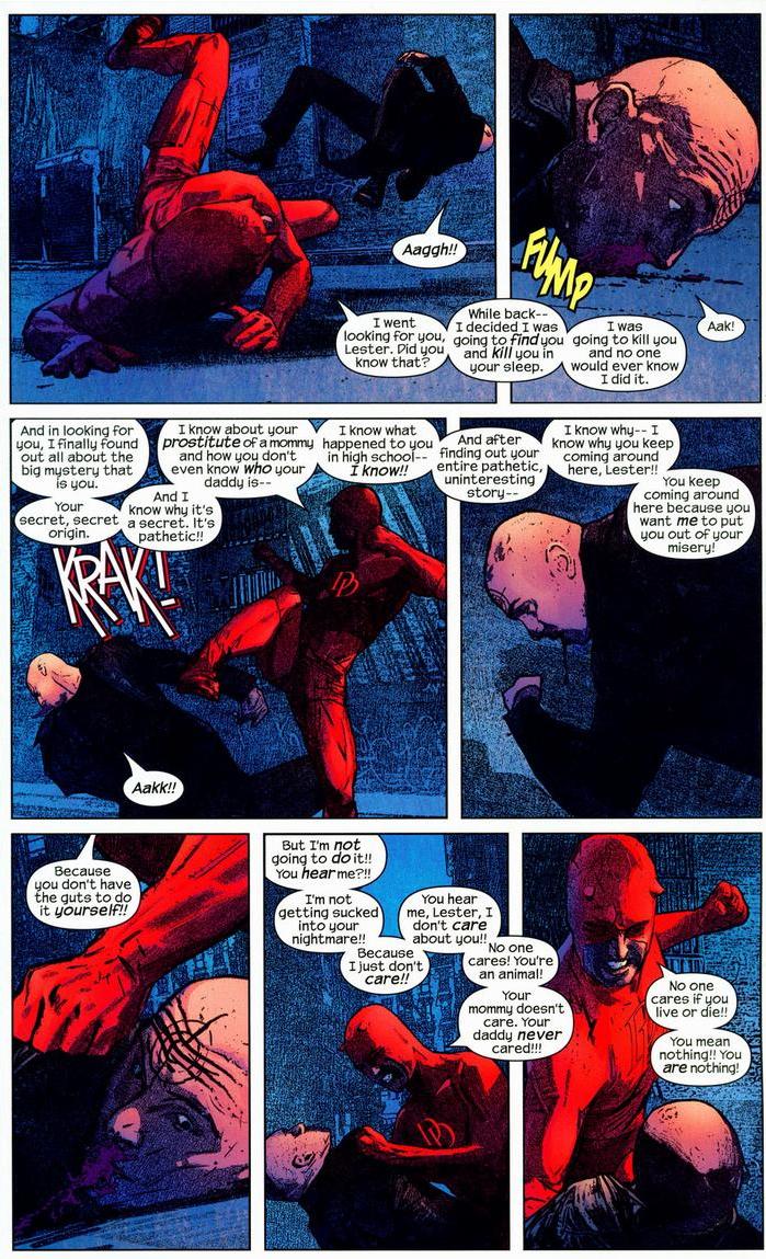 He’s definitely pissed off, but this Bullseye fight isn’t why I’m bringing up Daredevil. You read the word bubbles. Bullseye’s a pawn. Time to go after the king.