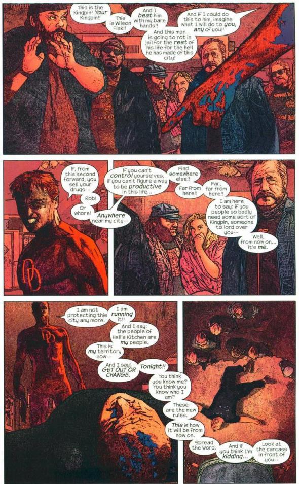 Yes, you’re right – Daredevil doesn’t kill. But he knows the Kingpin can survive being hit with a car, which is something you probably won’t see Captain America doing. No more games. No more level bosses to defeat and move on. This is game over.