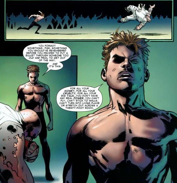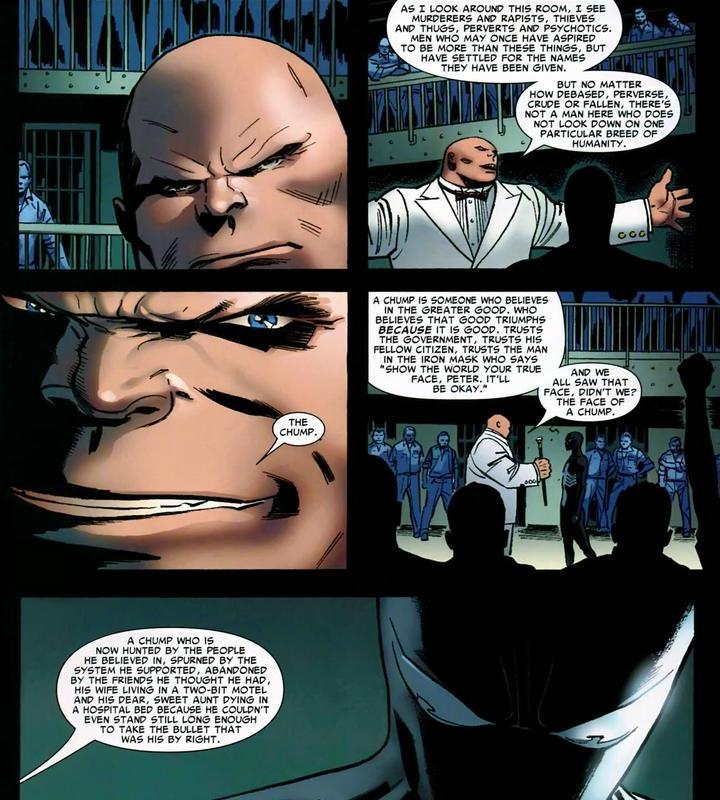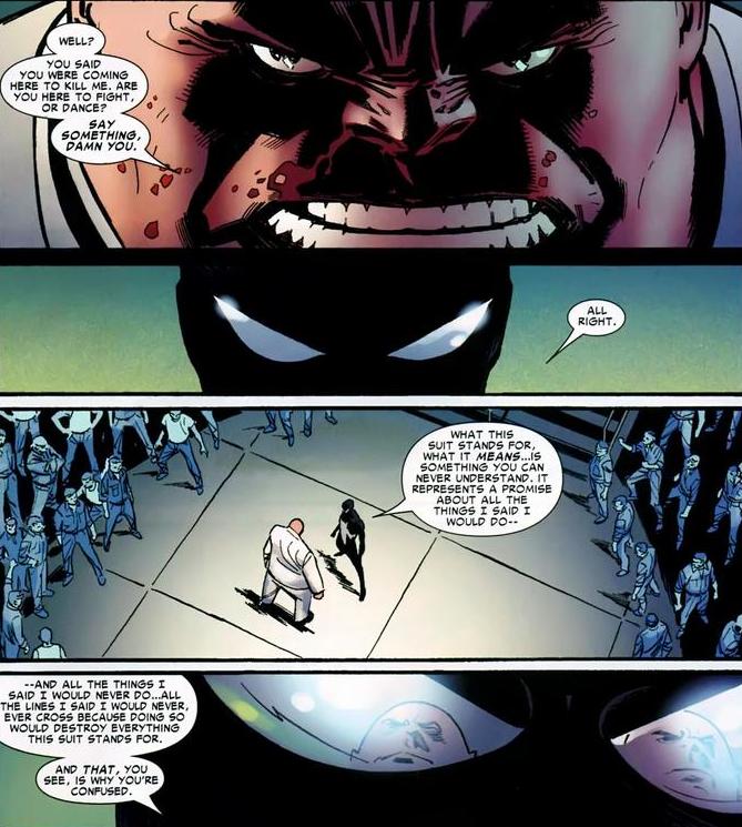 Spider-Man’s right, you know. He’s way faster, stronger, smarter, and tougher than a normal person. And the Kingpin, unfortunately, is a normal person. Parker has the capability to kill with just a simple flick of the wrist, and what has set him apart from the supervillains is his refusal to do so. But not anymore. The Kingpin no longer deserves any mercy.