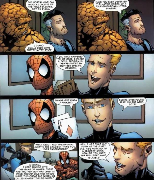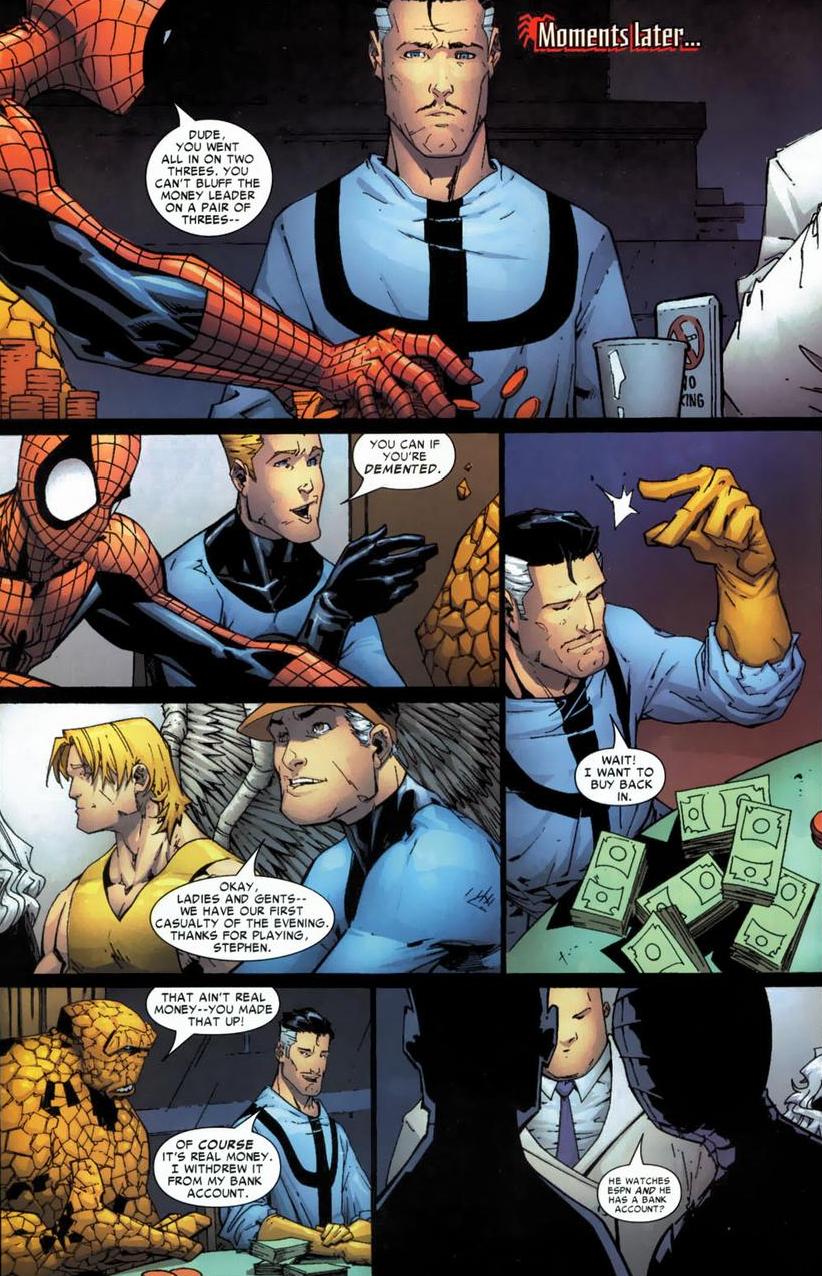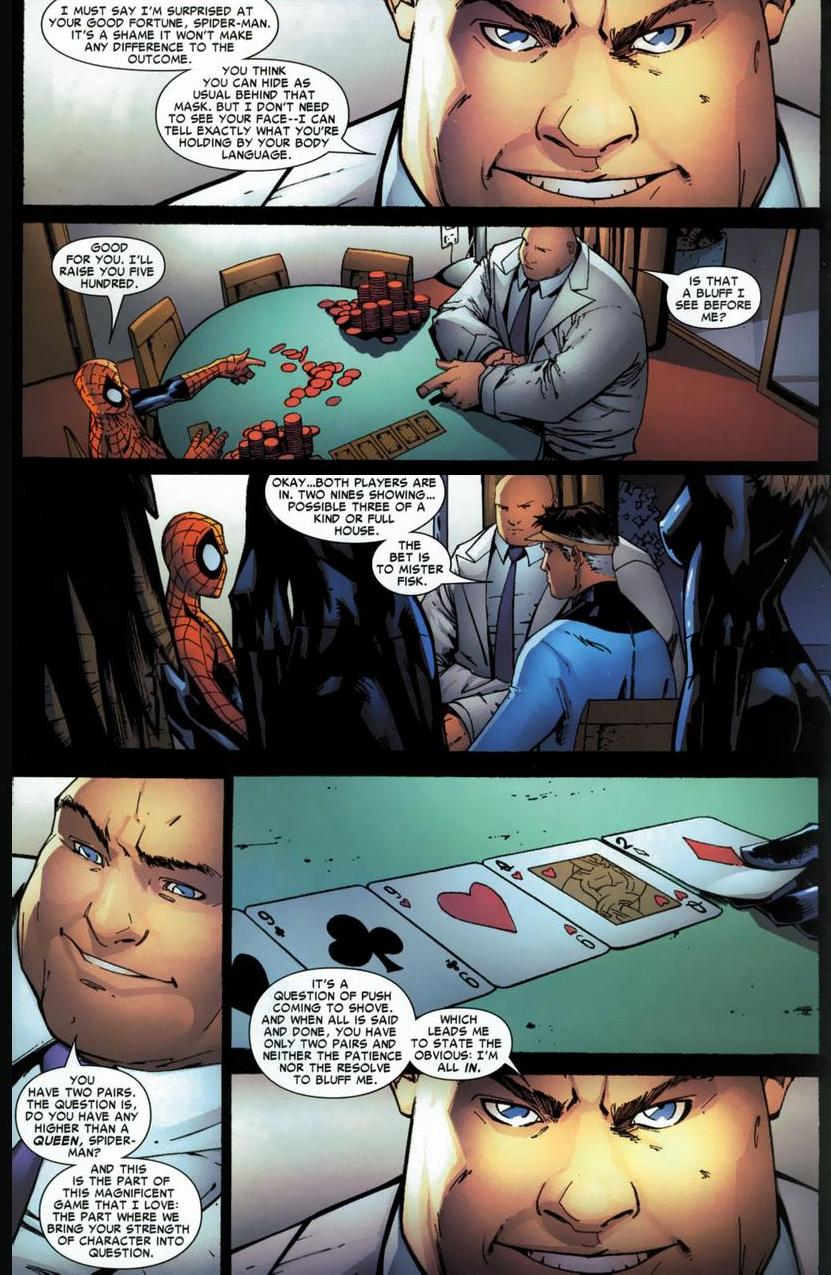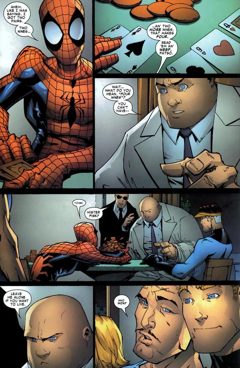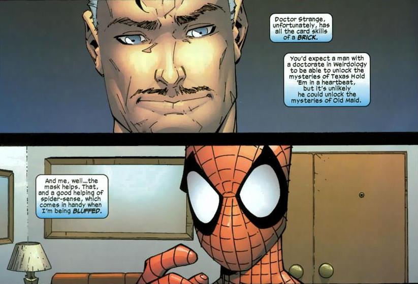 As for Spidey’s sense, I had no idea that his power would actually let him know if someone was bluffing. I though his power only buzzes in the presence of actual physical harm. Then again, his spider-sense has been written so nebulously over the years that most writers just make it do what they want it to do.
