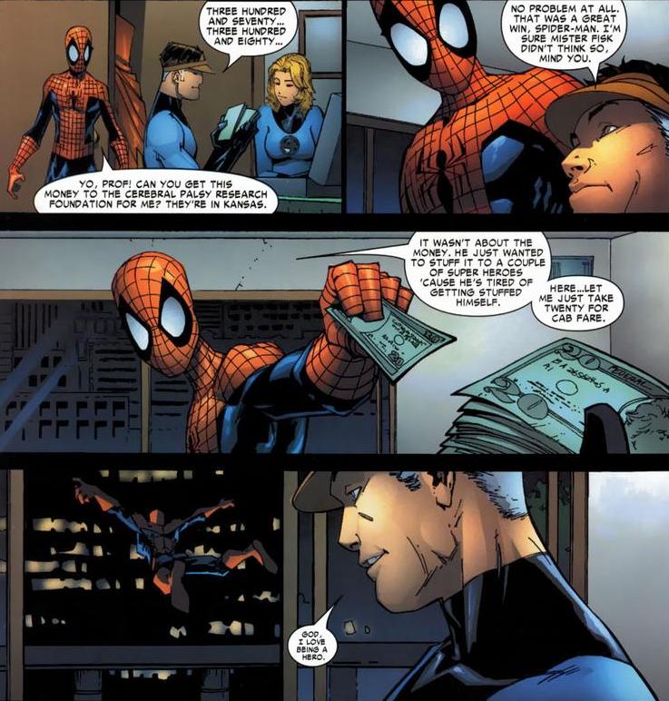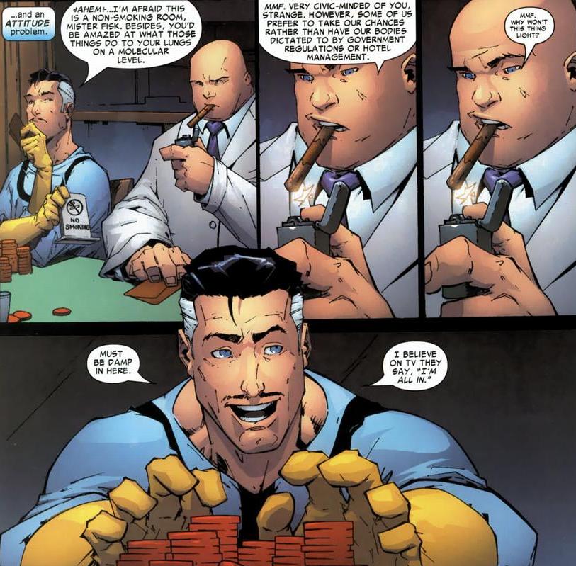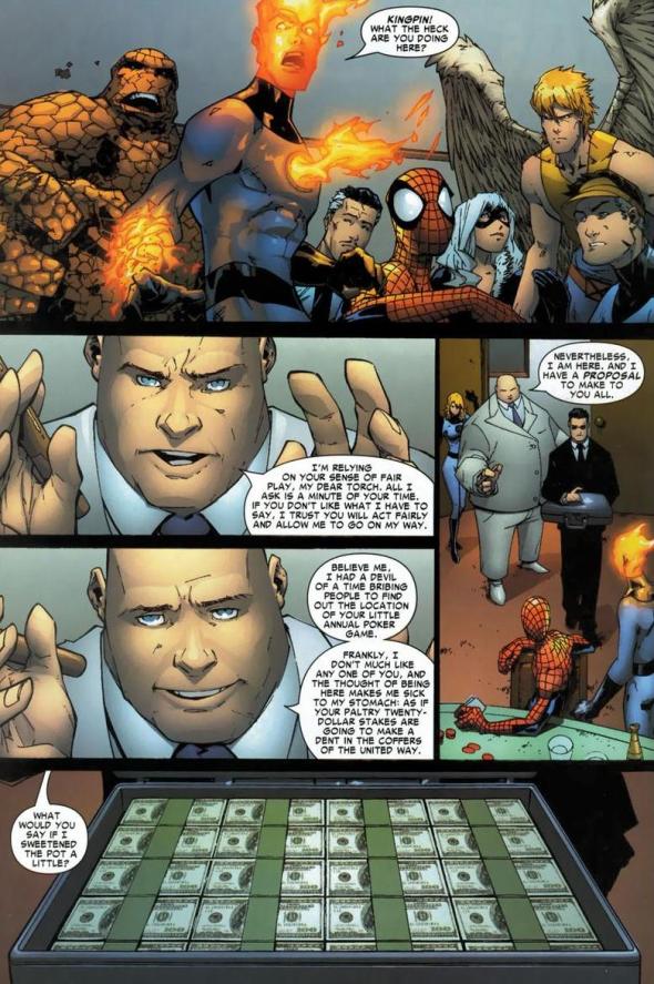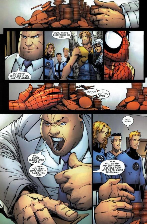 Yay for the good guys!  Though to be fair, the Kingpin will probably just claim the money as a tax write-off anyway.  Charity and all.  Because despite the obvious outcome, bad guys have to lose. Whether it’s fistfights, races, or card games, being a villain means you’re not going to win.  That’s why we read superhero comics in the first place.  Good triumphing over evil and all that jazz.