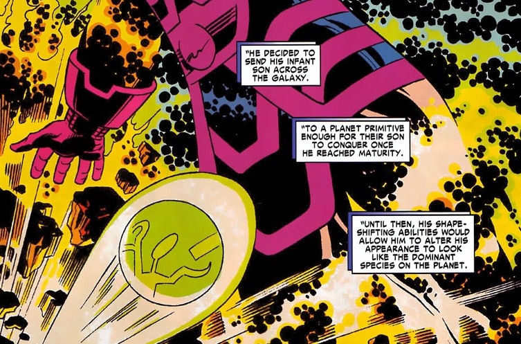 Except notice a special word? Yessir, conquer. Virtue’s people plan to swarm the planet and create monuments of the good ol’ days when their planet wasn’t eaten by evil beings who don’t wear pants. What shapeshifting Marvel alien species would do such a horrible thing?