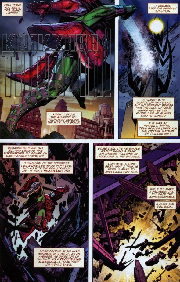 Unfortunately, this is from World War Hulk #1, so Iron Man ain’t coming out on top. But valiant effort, right? I’m proud of him too.
