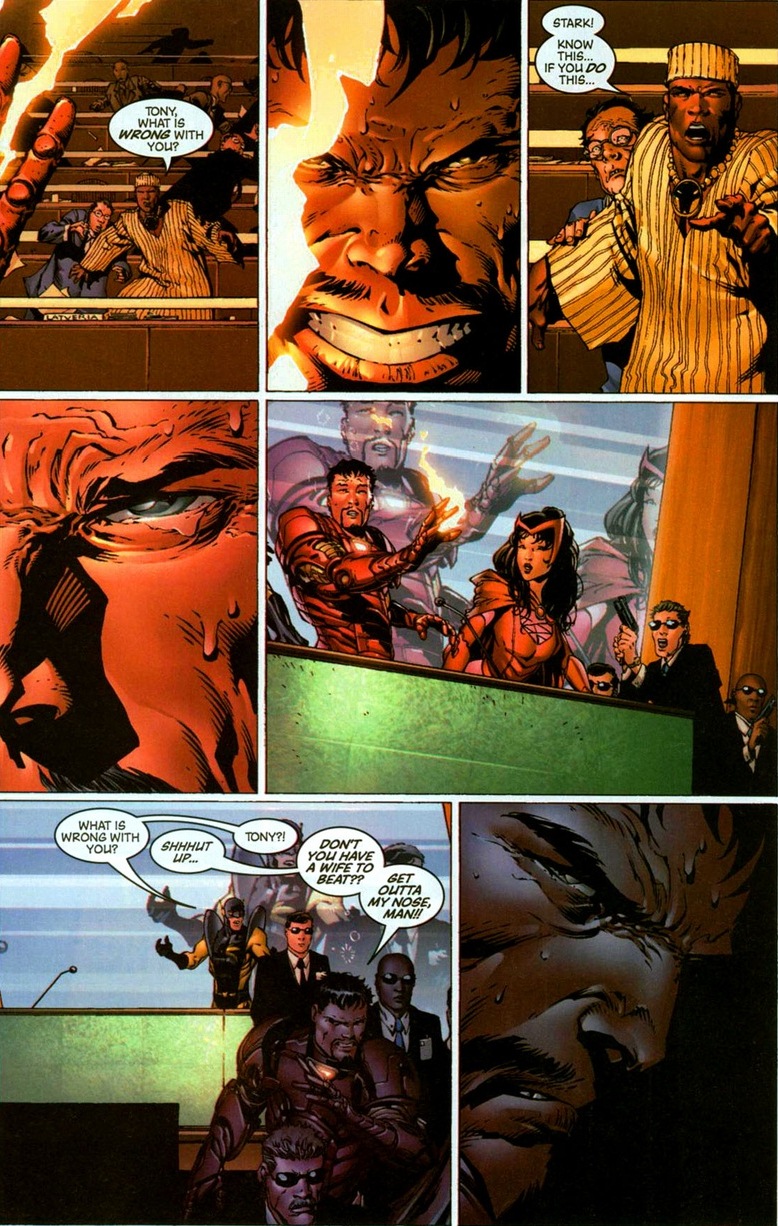 Let’s take a look at three Stark speeches, two from Avengers Disassembled (written by Brian Michael Bendis) and one from World War Hulk (written by Greg Pak). Get ready for a ton of word bubbles. Oh, and a bunch of spoilers.