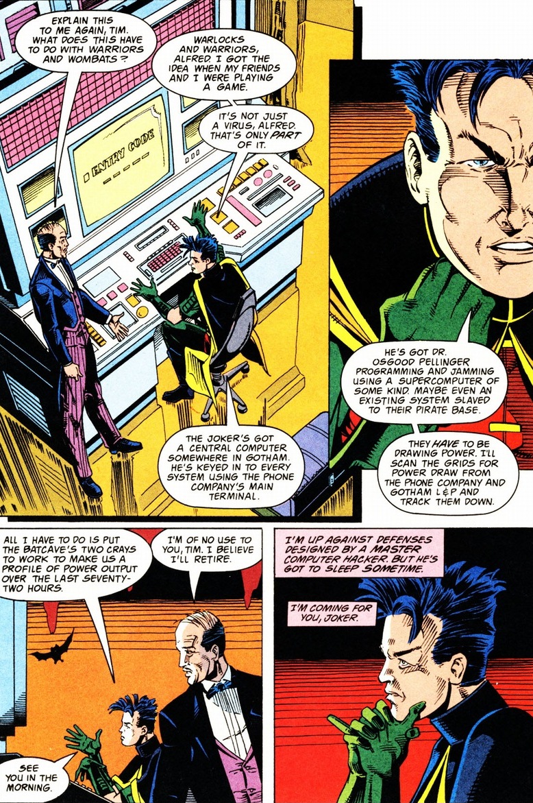 Y’see, Dick Grayson, the first Robin, had an athleticism and acrobatic skill that normal children don’t have. Part of the benefit of being circus folk. The second Robin, Jason Todd, did not possess the physical talents his predecessor had, and he was killed by the Joker with a crowbar back in 1989. But Tim Drake ain’t an athletic dynamo either. He was just a smart kid who forced himself into the Bat family. And that makes him the closest any child reading these comics in their damp basement has to putting themselves in the stories. Any 14 year old could be Robin if Drake can do it, right? Especially Drake, because they let him wear pants.