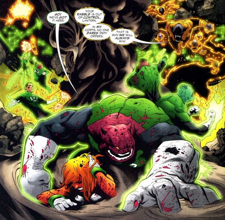 Posted: 07/18/2012 Filed under: DC, Fights 1 CommentEmphasis on plural Green Lanterns. Because for those who aren’t terribly familiar with comics, Green Lantern comics have an insane amount of blood, gore, and death. Surprisingly so. And I’m going to prove it to you in today’s article.