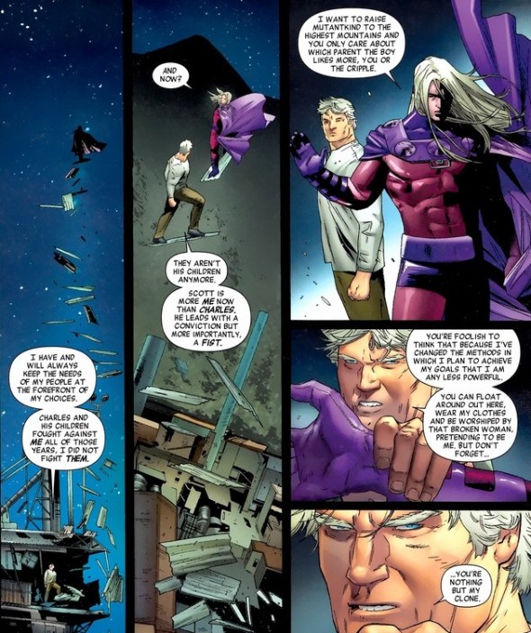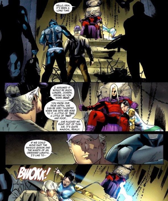 Good advice for later: clones don’t like to be reminded they’re inferior. Probably the same way with twins. Unfortunately, Joseph is every bit as strong as Magneto. And just as important, you only get to sucker punch Magneto once.