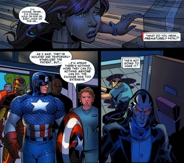 Poor Spider-Man.  This is the moment he swings from the scene victorious and into the loving arms of Mary Jane.  The Avengers all pat him on the back and life continues as normal, just with more wisdom and confidence.  But not this time.  He only won the first story with Ezekiel’s sudden assistance and a large injection of radiation.  Unfortunately, now he has neither.  Which means Morlun wins.