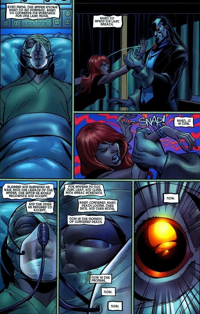 Does she stand a chance?  Well, Mary Jane’s a supermodel, not a superhero.  Also, she has no idea who Morlun is or what he’s capable of.  But she’s about to find out.