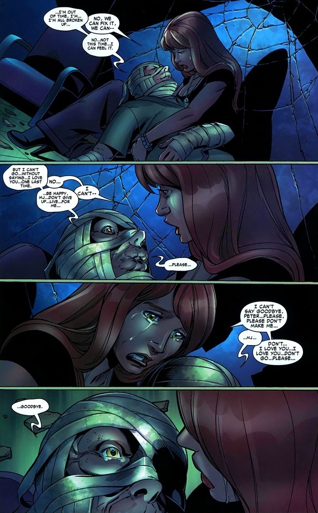 Anyway, with Morlun perished once more and Mary Jane saved, the two embrace one final time.