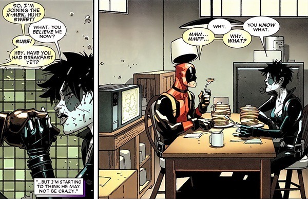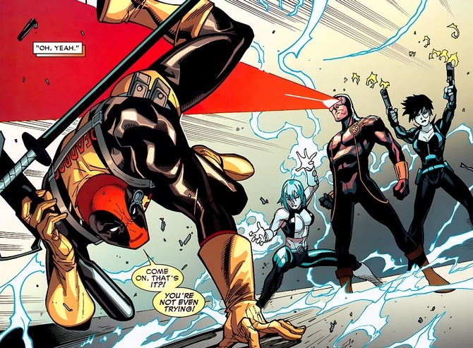 You might not know this, but back in Deadpool’s Weapon X days, Domino served with him on their assassination squad. So despite the backstabbing and open hostility, they’re actually sort of friends. When she hears Cyclops and Wolverine scheming behind the scenes, she sets Deadpool free. Mutants might have weird superpowers, but they all still have hearts.