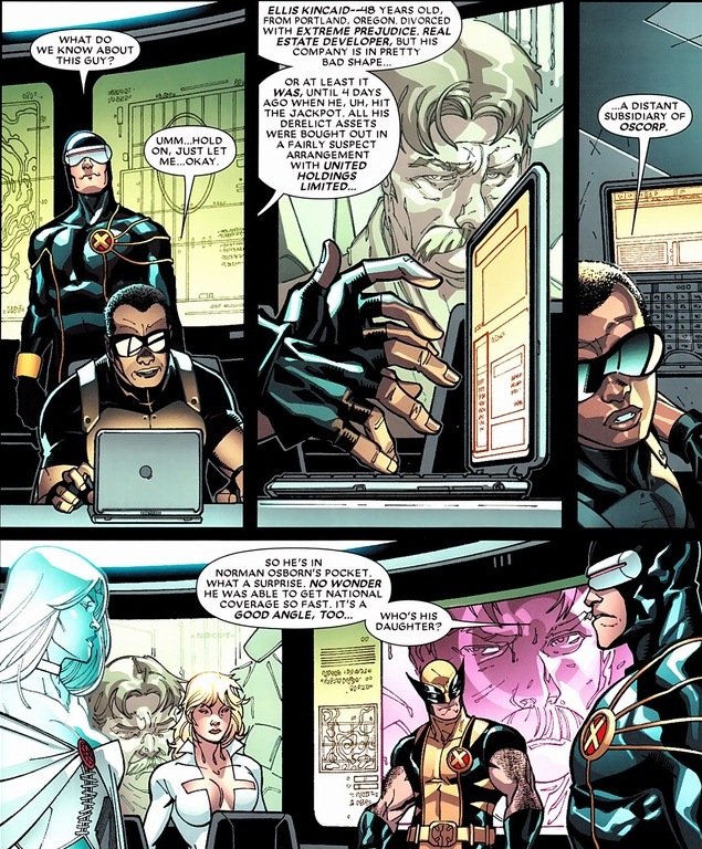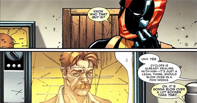 I haven’t forgotten about Osborn. If Deadpool succeeds in assassinating his target, the X-Men look majorly bad. Like a horribly complete loss of any public support or sympathy. And Osborn would like that very much. So much that he’ll secretly kill the guy himself if Deadpool flakes out.