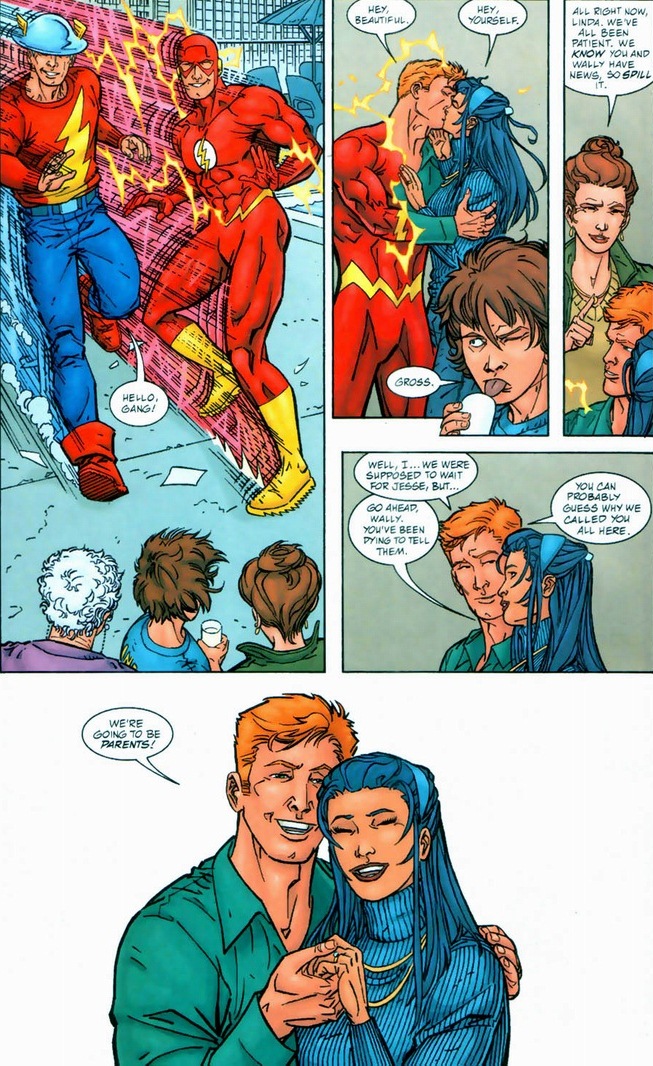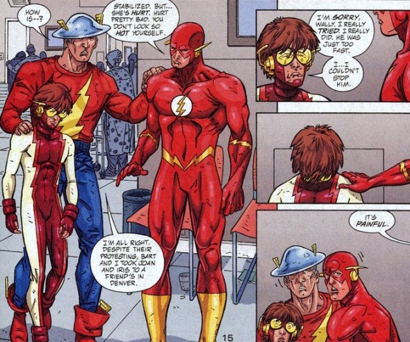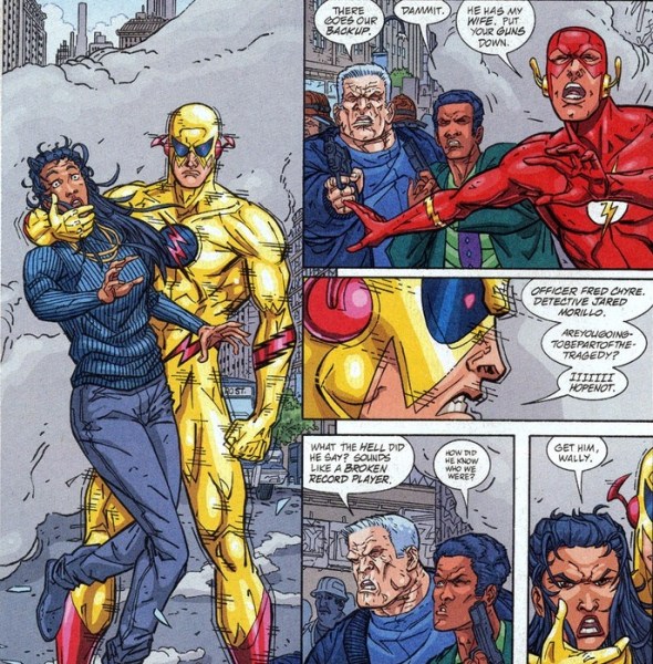 Now, Barry’s life had been defined by tragedy. His arch-nemesis Professor Zoom murdered his first wife, and caused his second wife to go mad. He even had to flee into the future for quite a while after a bogus murder charge. But Wally? Not so much. He’s won the lottery, became a playboy, and happily married a beautiful delightful woman. Plus, his identity is common knowledge and he’s a celebrated, beloved hero in Keystone City.