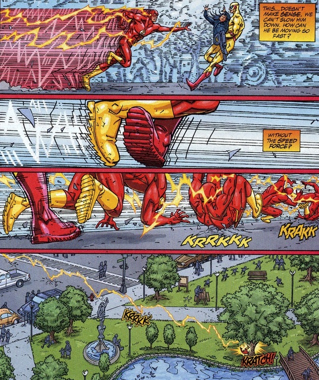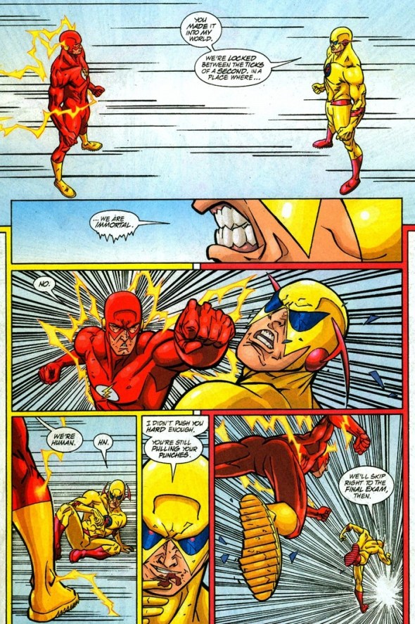 Thus begins a fight only Flash-esque superhumans can have. The delightful foot race/brawl combo.