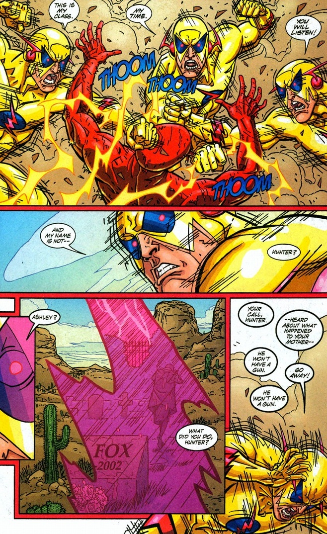 Posted: 08/29/2012 Filed under: DC, Fights 1 CommentYou know who’s cool? The Flash. Most of them anyway. Y’see, the Speed Force, which gives our hero his powers, tends to be very generous with its recipients. There must be a good dozen or so speedsters. And by the way, great! It’s an awesome power. But the most well-known and well-liked are Barry Allen and Wally West, the latter being our focus for today.