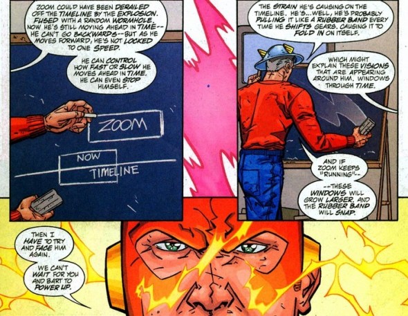 You can bet that Zoom’s butt will be kicked by Flash. But you’ve seen the panels above, how’s he supposed to win against this guy who’s faster, stronger, and seemingly unable to be affected by Flash’s Speed Force abilities? Two reasons. First, Zoom’s insane: