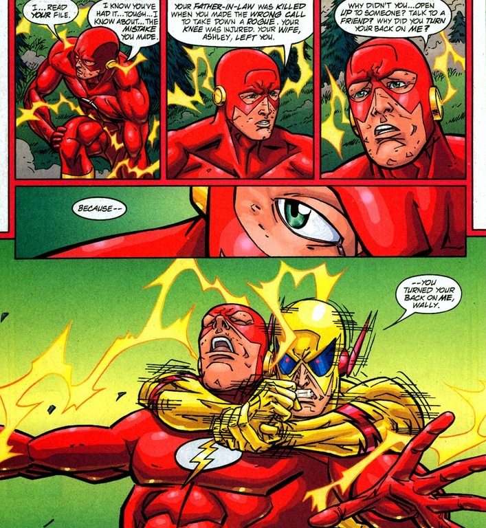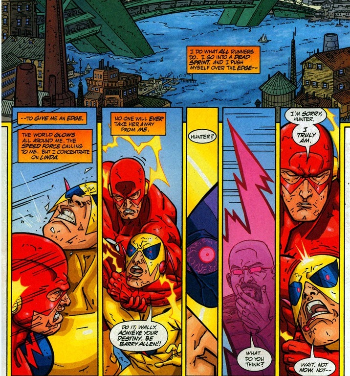 Well, unluckily for Wally, his long time buddy aims to fix that in Flash #197-200, written by Geoff Johns and drawn by Scott Kolins.