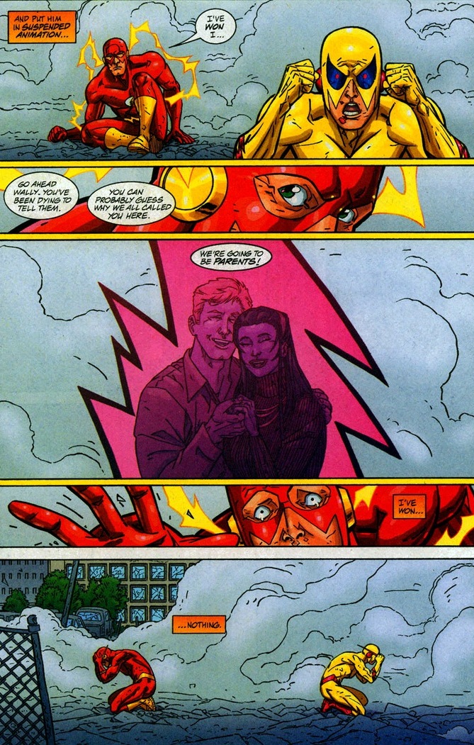 Okay, so this went badly for our hero. Zoom humiliated Flash and sonic boomed his pregnant wife. But you know enough about comics by now, the hero never wins the first bout. Makes the villain more terrifying.