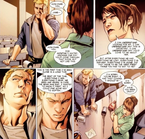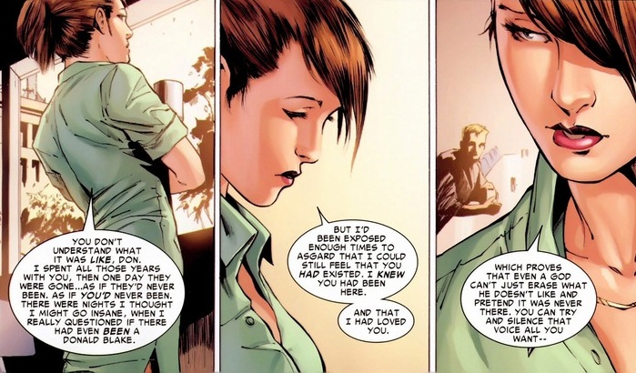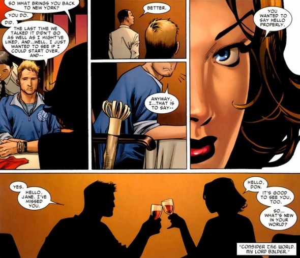 Look, Don and Jane can’t get back together.  Thor has control around 75% of the time, and as Don’s stated before, the thunder god’s way more important in the whole protection of society than the human doctor.  Our story isn’t over, but that last panel happens to be the end of Don and Jane’s love affair, now a deep, platonic friendship.