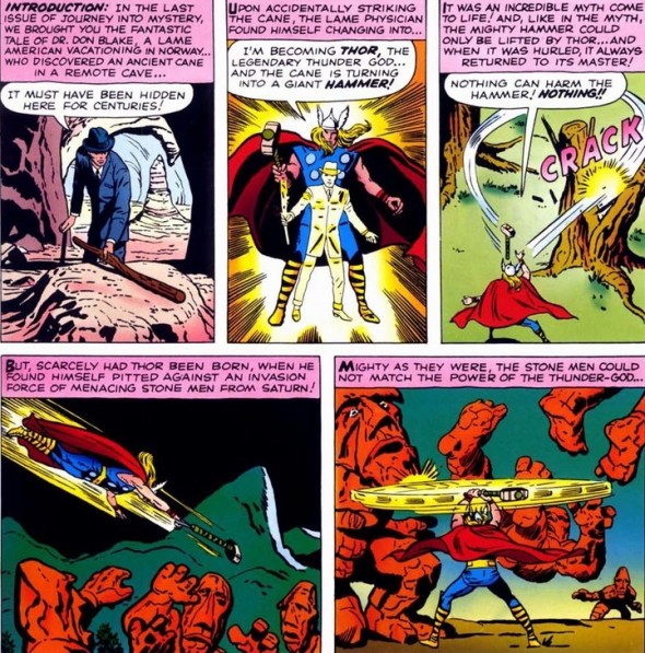 Here’s the real origin on Thor from Journey to Mystery #84 in 1952, written by Stan Lee and drawn by Jack Kirby.  Thor premiered the issue before, but this is the first appearance of Jane:
