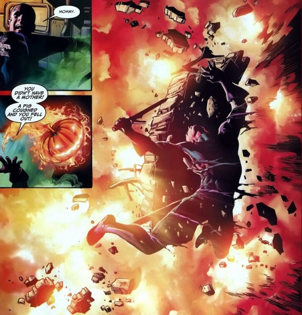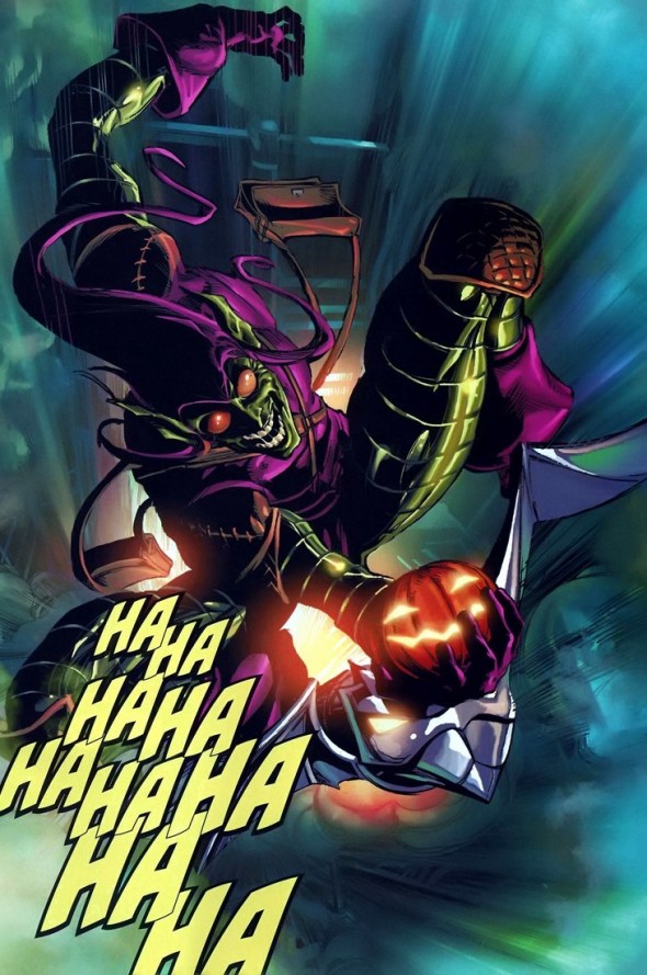 Pumpkin grenades! People forget that Osborn’s one of the smartest people in the world, most likely on level with Hank Pym and Tony Stark. His technology has advanced accordingly. Too bad he’s an insane psychopath.