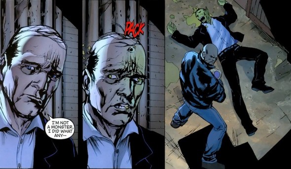 But why Osborn, you ask? Because with the Superhuman Registration Act still in place (and the Avengers unregistered and in hiding) added to Osborn’s new promotion to America’s top cop, he has the resources beyond beating up a few thugs at grimy bars. Though clearly the man reeks of evil and will make Luke Cage do horrible immoral stuff when he joins Osborn’s team. Unfortunate sacrifice.