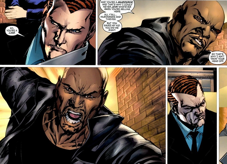 Y’see, despite the Skrull kidnapping his baby and sending every superhero in New York into a state of extreme panic for several days, Luke Cage’s still very much willing to let the alien go free as long as the baby’s okay. But you know those pesky supervillains, they don’t play nice. Luckily, Luke Cage has no worries bending some rules of his own. Though not yet.