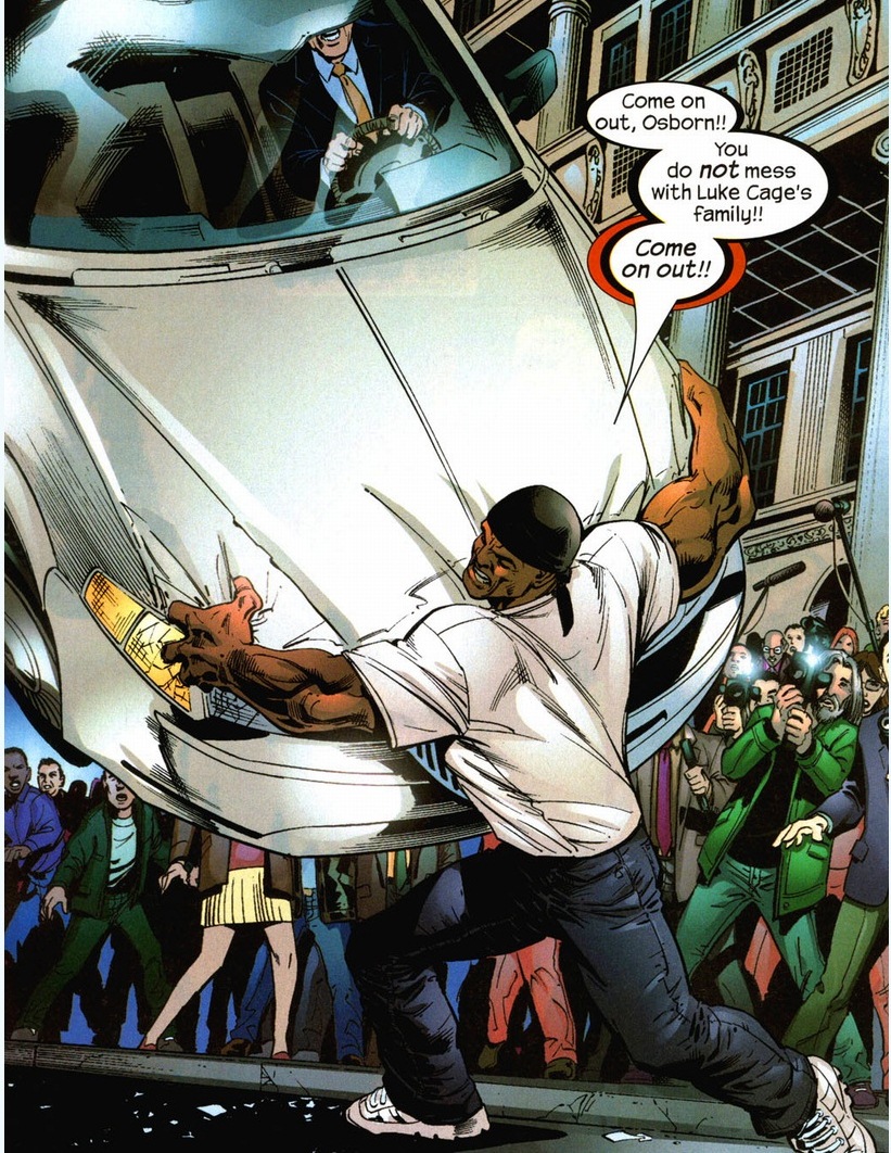 Only one problem. Osborn’s a psychopathic supervillain and Luke Cage just picked a fight with him in the middle of a very public crowd. One of the two doesn’t care about civilian casualties. Can you guess who?
