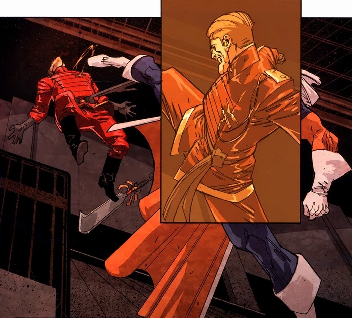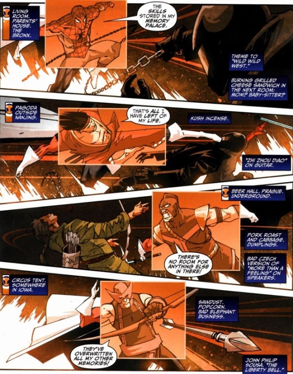 One of my favorite things about this comic is the neat way the Van Lente and Palo show his imitated skills during the combat scenes.  Cool touch, right?