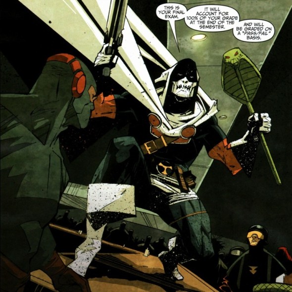 Do you know about the supervillain Taskmaster?  Well, all those bad guys don’t become awesome overnight.  Y’see, someone has to train them and get them properly punching Spider-Man and the other do-gooders.  That’s where Taskmaster comes in.