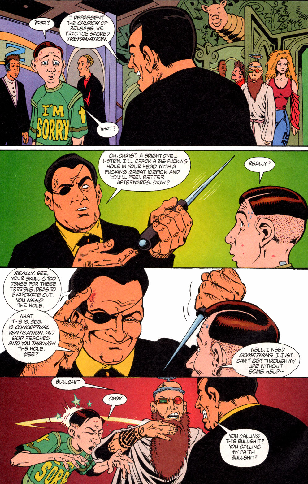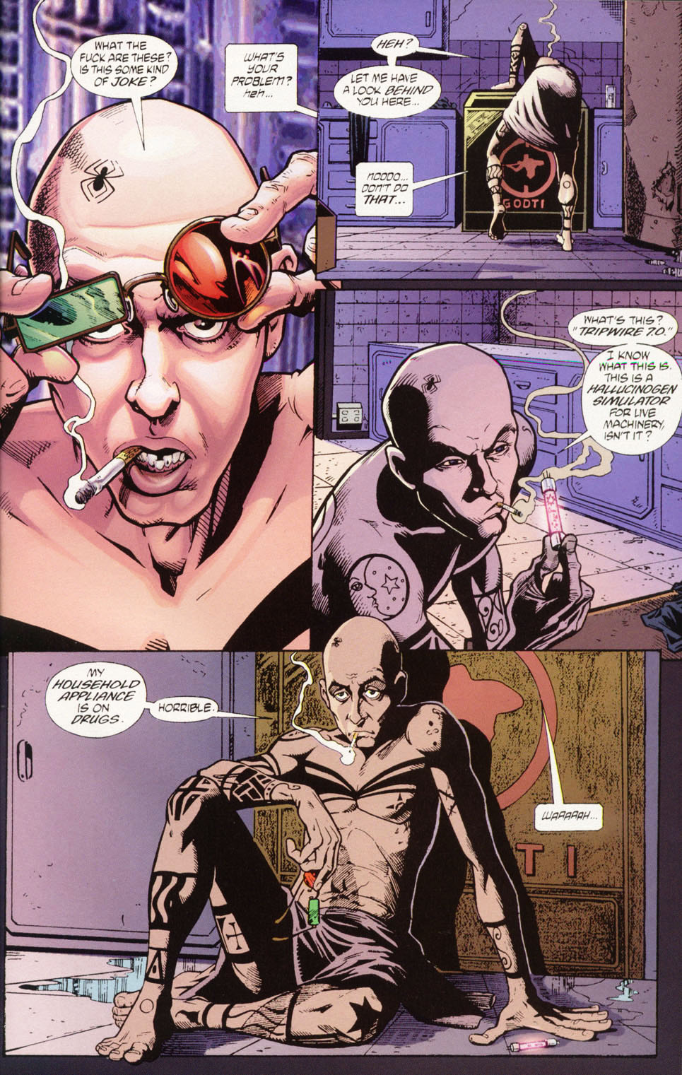 All images come from Transmetropolitan , written by Warren Ellis and drawn by Darick Robertson.