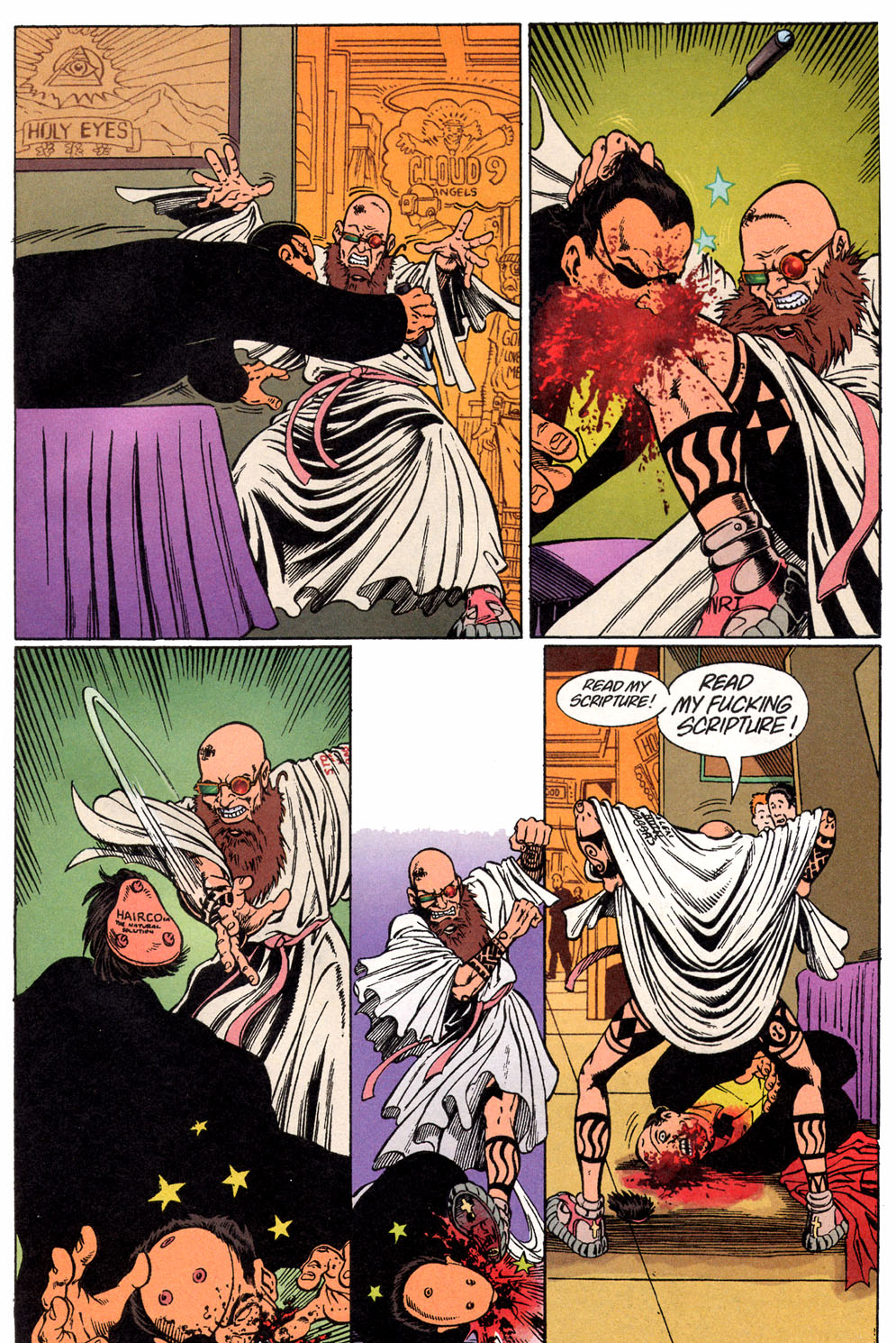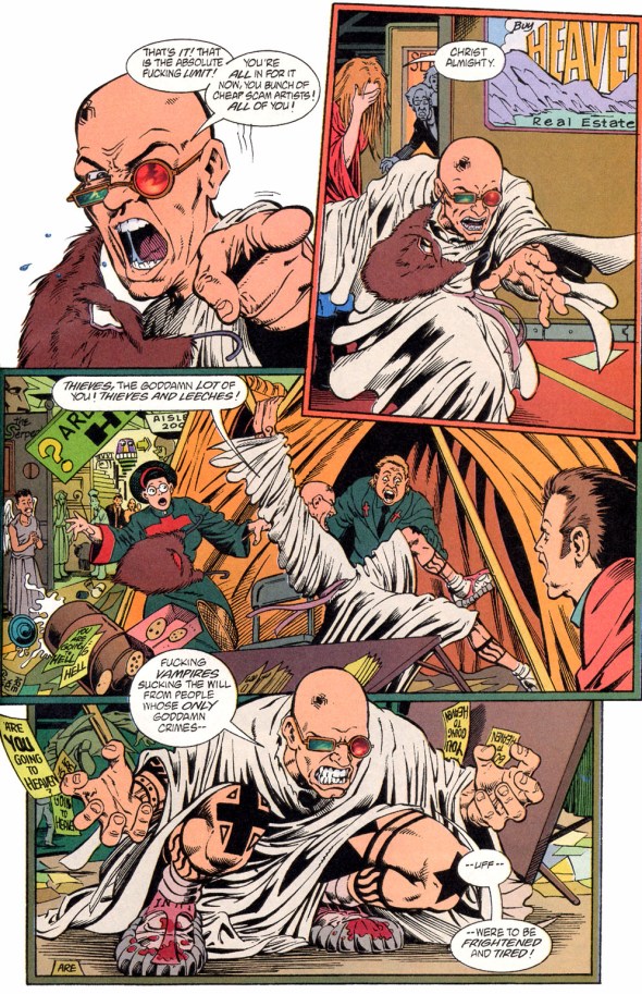 Yes, that’s Spider dressed as Jesus throwing a fit at a convention because he sees faith as nothing more than bullshit. Yes, it would be a terrible thing to see in real life. But a part of us, depending on our views, would love to see someone do that at a similar situation.