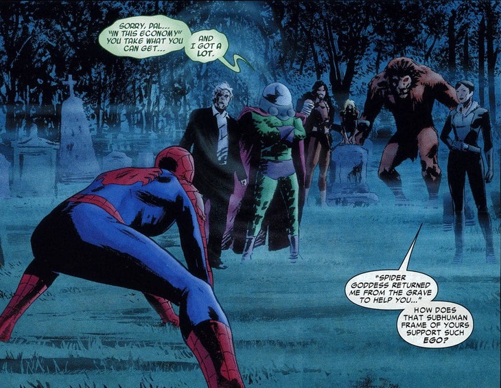Uncle Ben’s a double-edged sword. His death showed Spider-Man the error of his ways and created the world-saving superhero’s steadfast morality and compassion. On the other hand, whenever Peter screws up or has someone kick it because of something indirectly related to him, the emotional turmoil will totally wreck his judgement calls and fighting spirit. Like when he decides to go to an abandoned graveyard to take on all the Kravens at once.