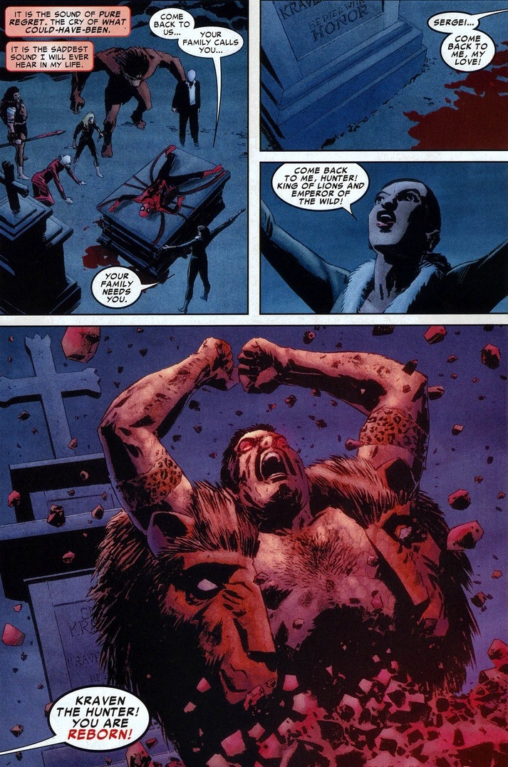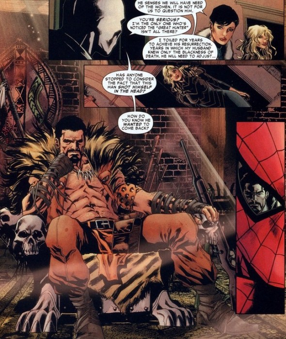Oh, I didn’t really mention that Kraven the Hunter happened to be deceased, did I? Go read the Kraven’s Last Hunt arc, a super famous, well-written gem back in 1987. After seemingly killing Spider-Man, Kraven besmirches the superhero’s name and then finally commits suicide. Not anymore, I guess. Though I would be far more confused than triumphant if I had to burst out from a grave, but to be fair, I’m also not a deranged supervillain.
