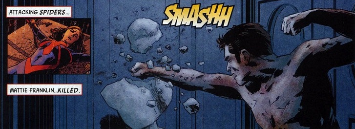 And then there’s this next moment. Y’see, part of Spider-Man’s insanely popular appeal is his persona as just a regular guy with regular guy problems who just happens to have spider powers. And part of those regular guy problems includes brief flashes where he’ll snap and lash out amid a strong enough whiff of rage or stress. Like this:
