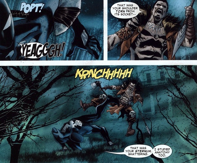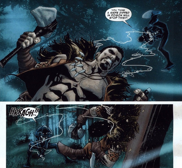 I guess boredom builds after attacking elephants and tigers with rocks and sticks for a decade or so. The Kravens set up this little game for Peter because it’s most likely the only way they can get that adrenaline addiction fed. Or they just like stabbing tough guys.