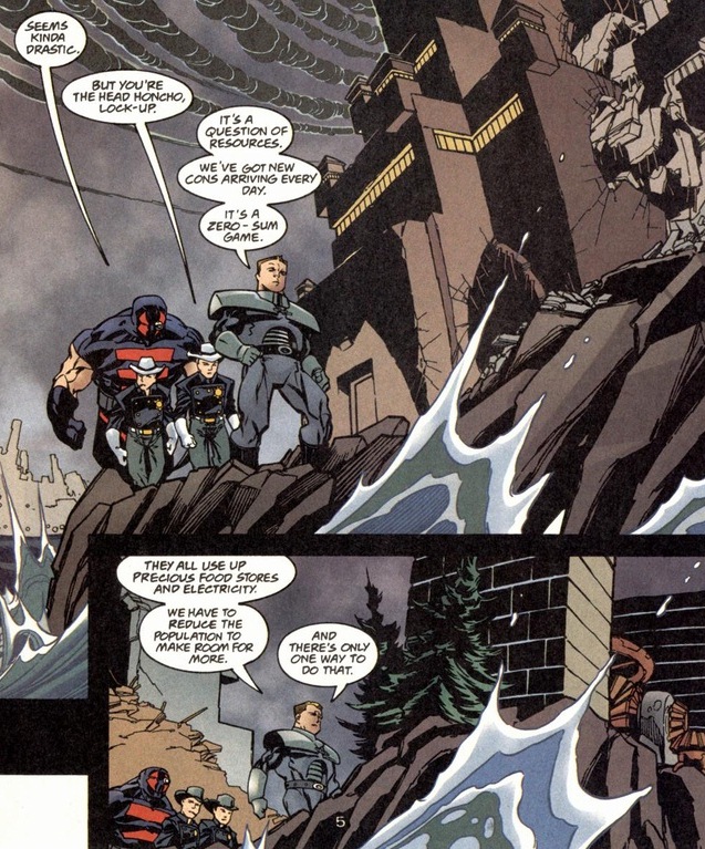 Posted: 10/07/2012 Filed under: Characters, DC 4 CommentsIt’s the 100th post and to celebrate, we’re going to read my favorite comic book scenario: superheroes breaking out of prison. I adore the idea of superheroes escaping out of somewhere inescapable while surrounded by enemies and inevitably always ending up in gigantic fistfight mob climax. Delightful reading every time.