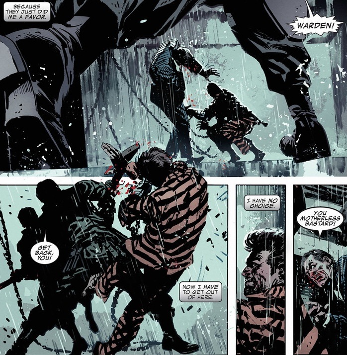 Bucky fights like three battles. You can read the book for the rest. But I’d be a horrible commentator if I didn’t show you the mandatory flashback of past crimes compiled in a cool panel page.