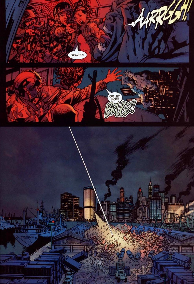He dropped a tank on him. That he was sitting in. The Ultimates rock. Unfortunately 70 tons of metal dropped from an excessive height doesn’t even begin to slow down the Hulk’s rampage. If all else fails, punch him in the face.