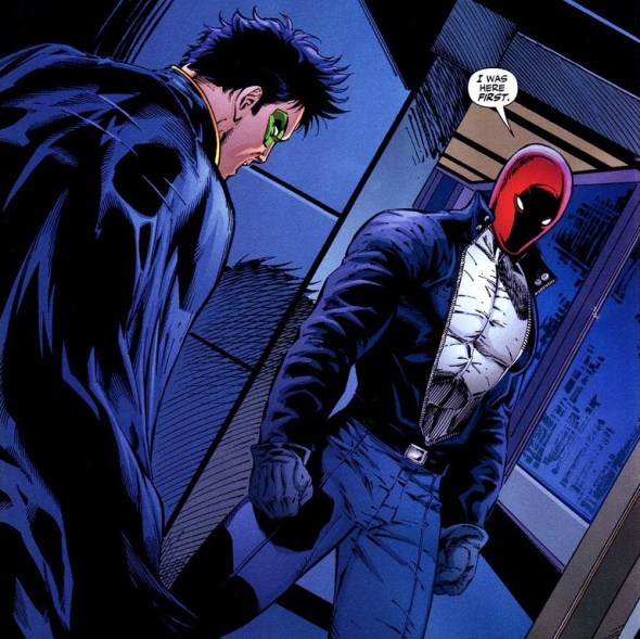 We go back a little in time to the mid-2000s.  Todd (now Red Hood) just came back to life, and enraged over Batman’s refusal to avenge his death and a new, younger Robin patrolling the streets of Gotham.  Also, Todd’s insane.