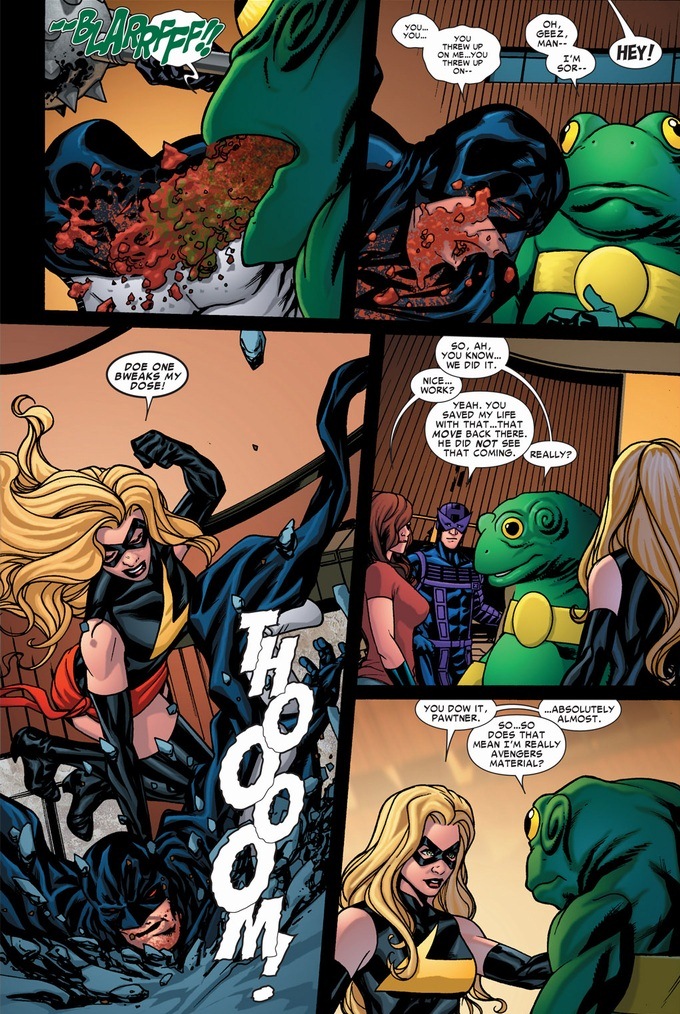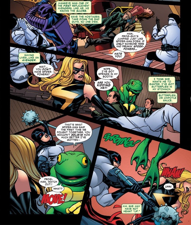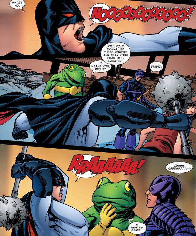 I’m sure Frog-Man will appear again one day. I don’t want tell the brilliant writers how to do their job, but I do hear there’s a new Young Avengers series coming soon. What’s one more hero on the roster?
