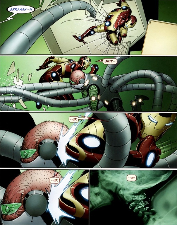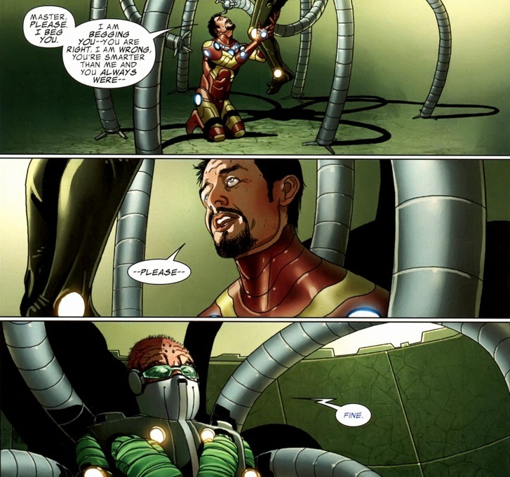 Would Iron Man win this brawl if it continues? Definitely, but I mentioned it before — Doc Ock prepares for everything. He’s an evil, fatter version of Batman.