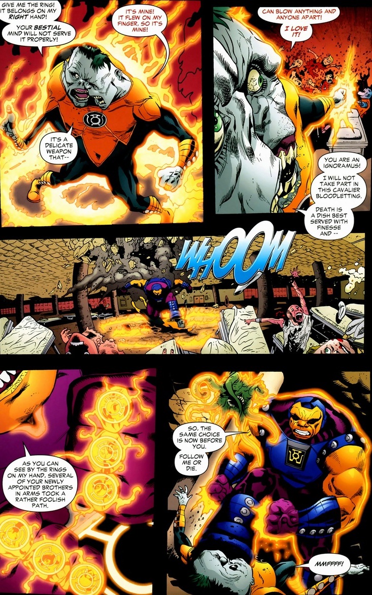 Yes, Mongul would give the entire Justice League a run for their money. Except he forgot something. He’s using Sinestro’s ring against Sinestro. That’s like sending out sharks and jelly fish to defeat Aquaman.