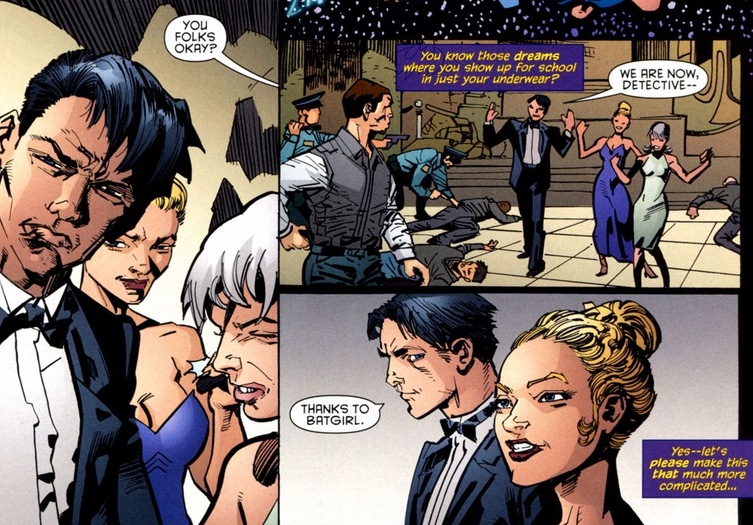 Okay, the mission’s simple.  Since Leslie Tompkins (the assassins’ target) is hanging out at a fancy rich people party, Tim and Stephanie will go incognito as themselves.  After all, Bruce adopted Tim a few years ago.