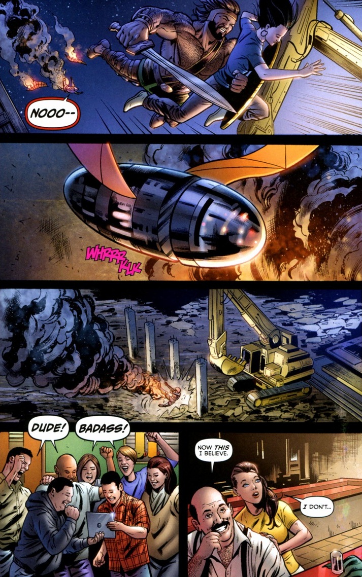 To redeem himself to his boss, Hobgoblin’s sent after a young woman next in Herc #2, written by Greg Pak & Fred Van Lente and drawn by Neil Edwards & Scott Hanna. Unfortunately, this isn’t the promiscuous, all-powerful Hercules you know and love. I mean, he’s still promiscuous, but he sacrificed his godlike powers to save the universe a while back. The guy’s just a normal man who fights crime in a loincloth.