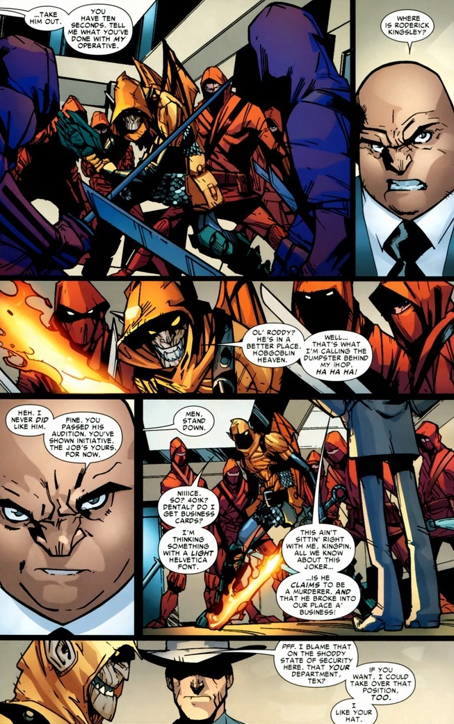 That’s the second time Hobgoblin’s bag of tech backfired on him. The guy should really find a better way to store his bombs and goo.