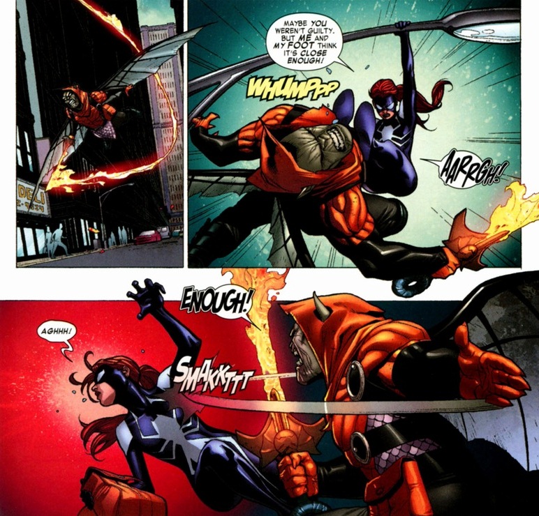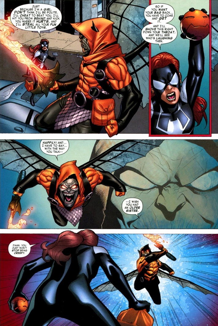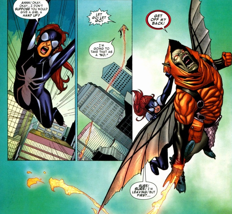 Not exactly a master strategist, Hobgoblin finally decides to do something useful, like fly in the air. Most sixteen year-old girls can’t fly.