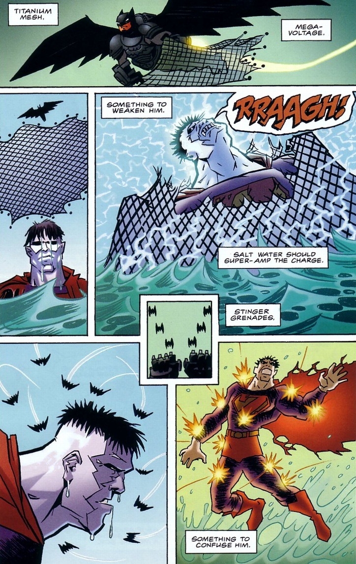 Valiant effort by Batman.  It’s really the thought that counts when it comes to battles.  When your opponent has you pinned on top of nuclear bombs, maybe it’s time to tag in your partner.  Y’know, like a man who has a bit more experience dealing with crazy clones of himself.