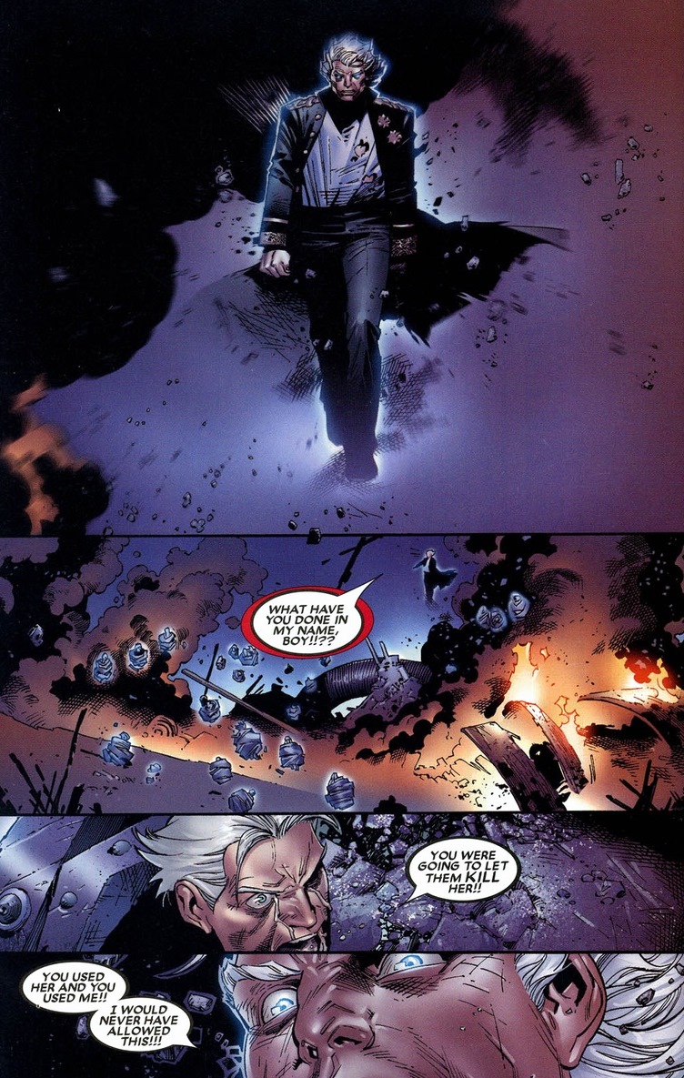 As the House of M event unraveled into brawling and disorder, the anger directed at Magneto slowly revealed itself as misplaced.  Magneto’s little empire fell apart through Quicksilver’s meddling and lies. While I’m not a parent myself, Quicksilver probably needs a spanking.  A Magneto spanking: